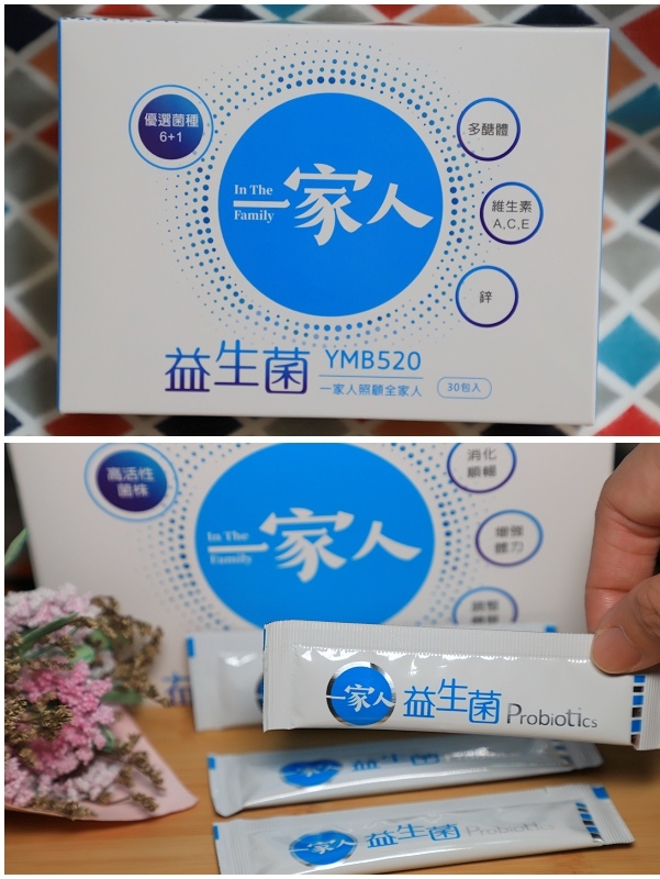 ▲陽明生醫一家人益生菌近期也是非常有名,主要就是找藝人曾國城及全明星運動會的吳霏代言,菌種不多不少剛好有6種,也加了陽明YMB520專利菌,益生菌裡有添加益生質,但沒有添加後生元及專利酵素,所以比較之後還是優萃暢護益生菌略勝。
